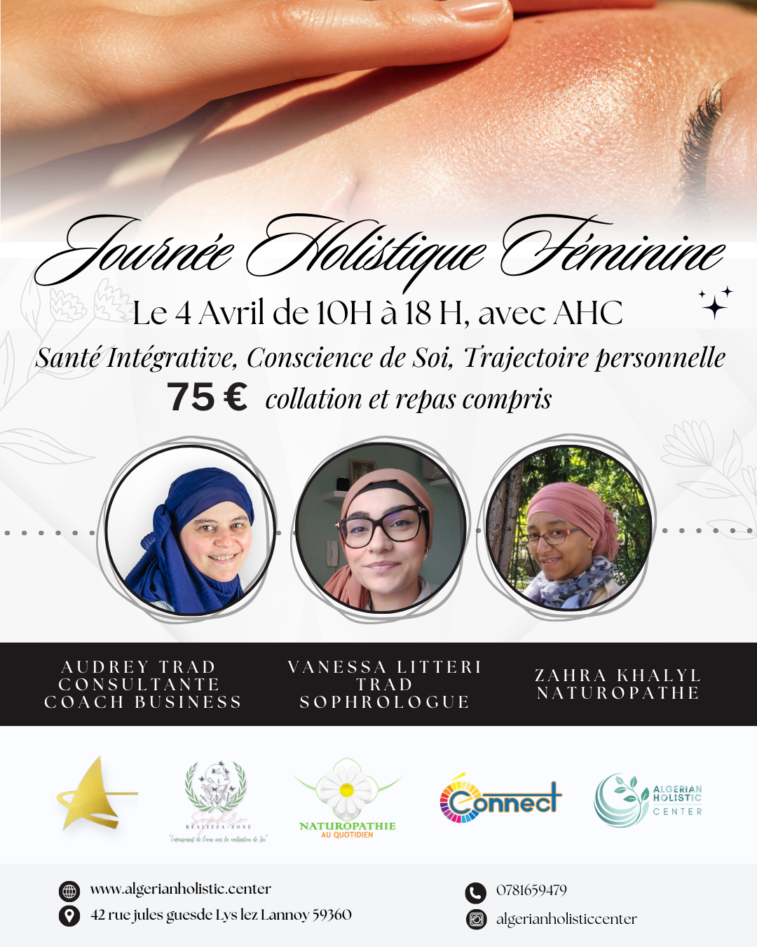 Algerian Holistic Center co-organise une journée 100 % féminine réunissant trois professionnelles référencées sur la plateforme, dans une approche pluridisciplinaire structurée et cohérente.